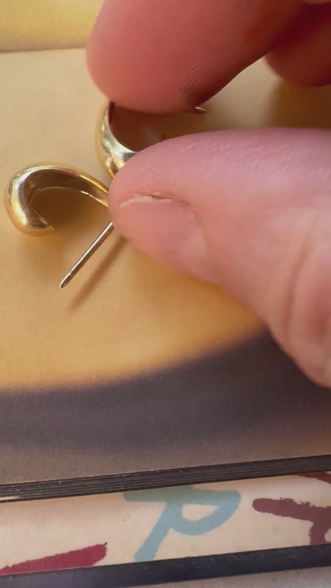 Cutest puffy J hoop that tuck right under the lobe. 14k yellow gold. Butterfly backs. 1.9g